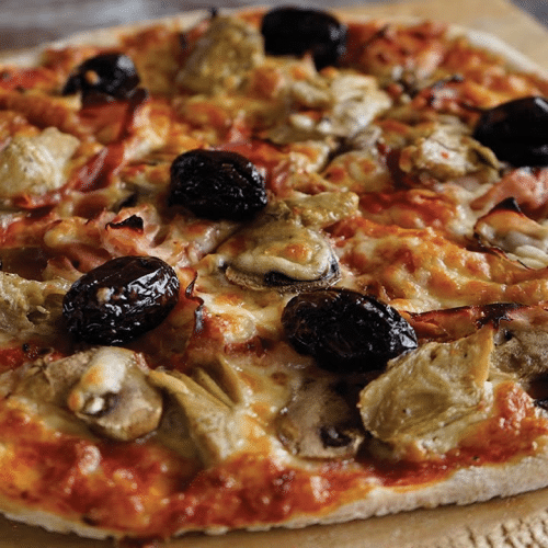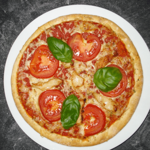 mit Creme Fraiche, Zwiebeln und Käse überbacken